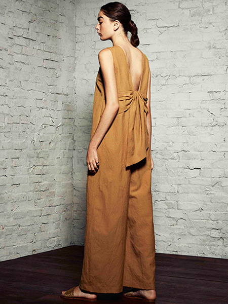 バックスタイルに大きなリボンがついたこちらのオールインワン。