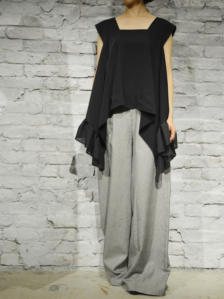 サイドの裾で揺れるフリルが印象的なノースリーブトップス。