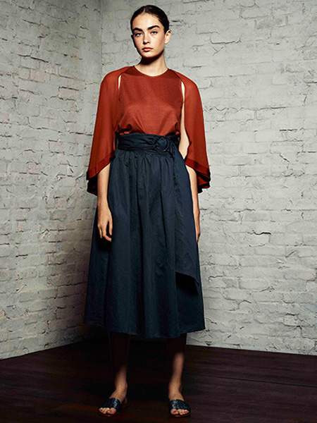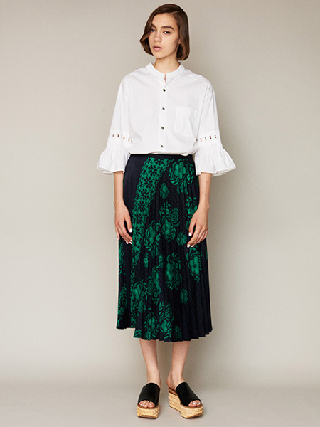 ひざ下のミドル丈で細かめのプリーツで品もあり素材にもこだわったデザイナーさん自身今シーズン最も力の入ったアイテムです。