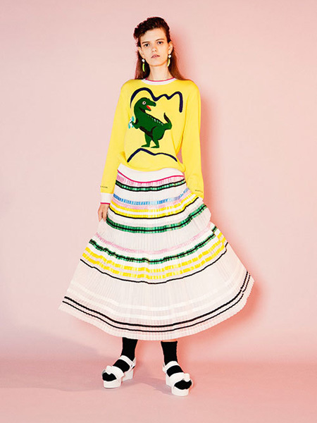 肉は食べず、蝶々が友達。そんなおっとりキャラクターの恐竜たちをスポーティーな気分の装いになじませて「ジュラシックスポーツ」の着姿を提案しています。