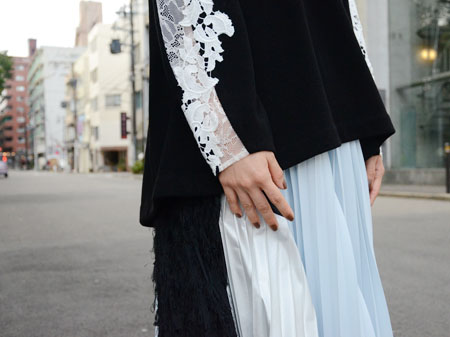 ショルダー部分から袖にかけてのレース。