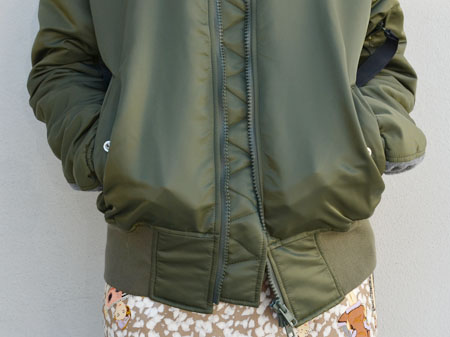 本来、MA-1の左腕にはユーティリティポケットと呼ばれるポケットが付いているのですが、CHERIEのブルゾンでも再現されていました♡これはもともと、タバコやペンを入れる為のポケットだそうです。