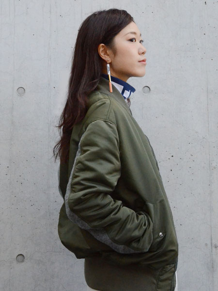 ベーシックなMA-1をよりボーイッシュに、かつCHERIEらしさもきちんと取り入れたこのブルゾン。