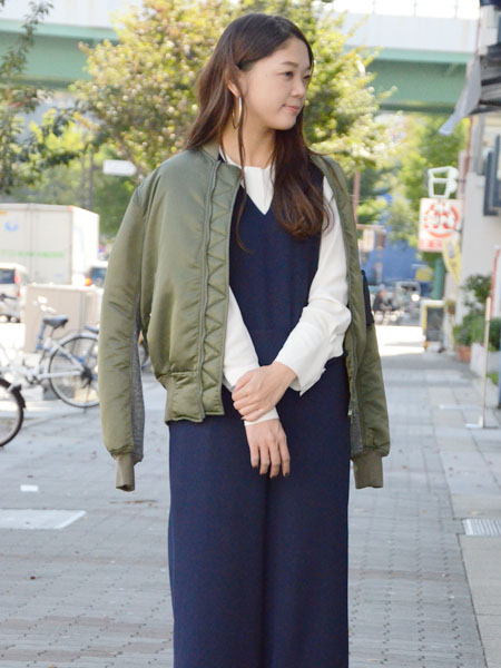 ビッグシルエットのブルゾンですが、丈はコンパクトなのでおかしなバランスにならないのです。