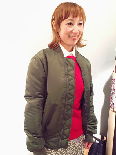 モードの中にフェミニンさも少しプラスしたスタイルが得意のかんちえさんですが、このブルゾン私のスタイルにも合わせやすそう!と言っていました。