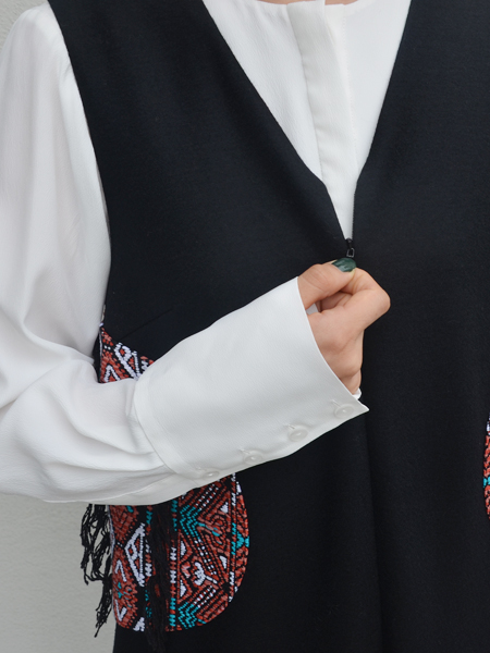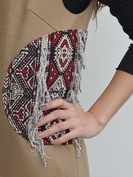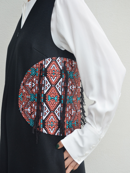 動くと揺れるフリンジは刺繍に立体感を与えます。