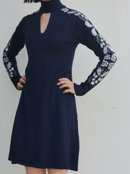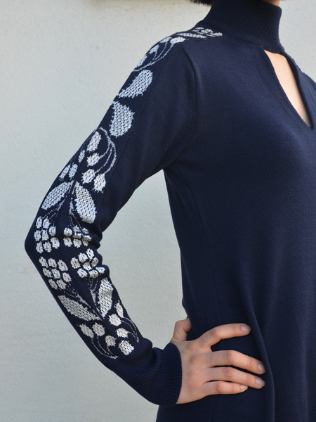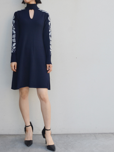 袖全体にスズランの柄が入ったニットワンピース。