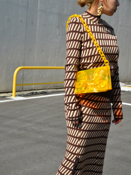 今日はmameのPVCバッグから、今シーズンを象徴するカラーでもあるオレンジ(山吹色)、