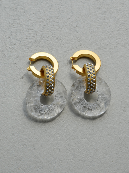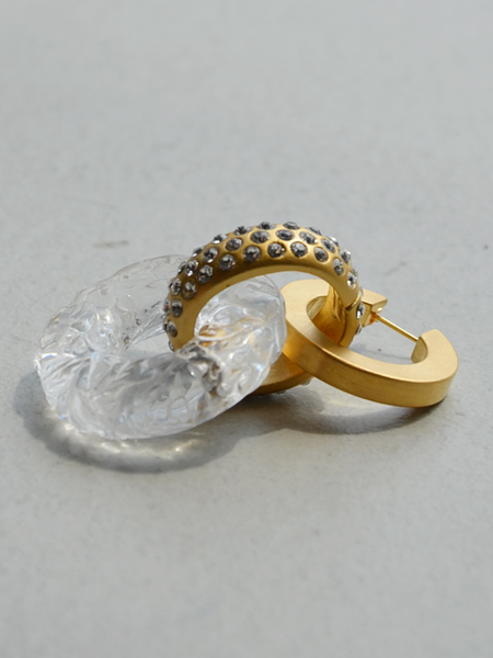 無機質な真鍮に軽やかな印象のクリア素材が融合し、存在感のある耳元を演出します。