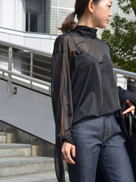 コートの下に着ているこちらのシアーシャツです♡