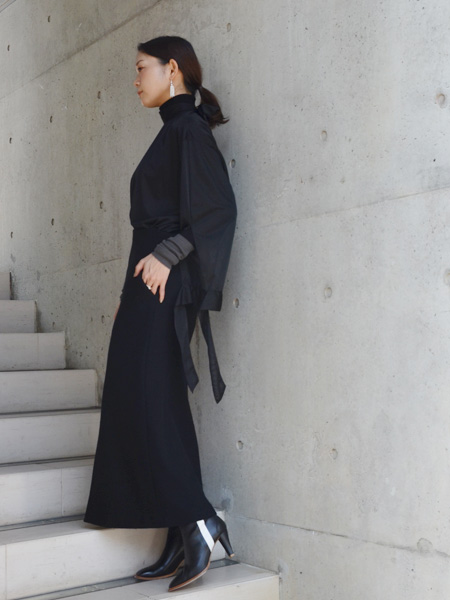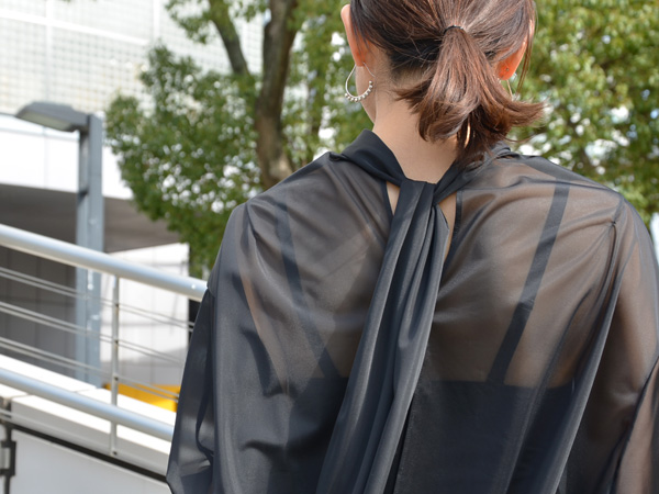 オールブラックでも透け感があることで重くなりすぎません。