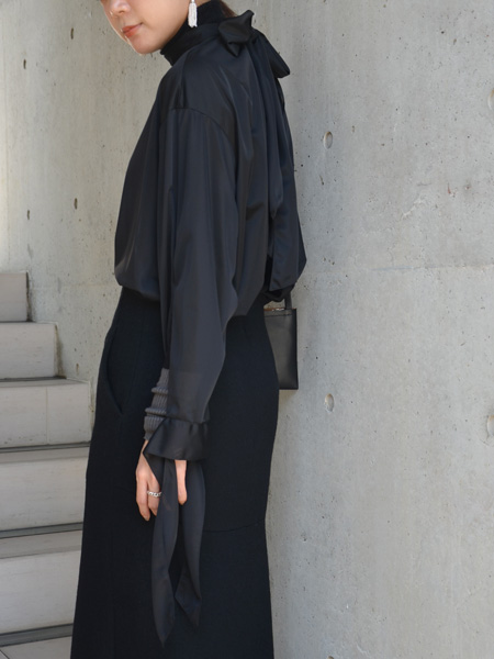 さらに袖口に入ったスリットに、揺れるリボンが女性らしい手元を演出してくれますよ。
