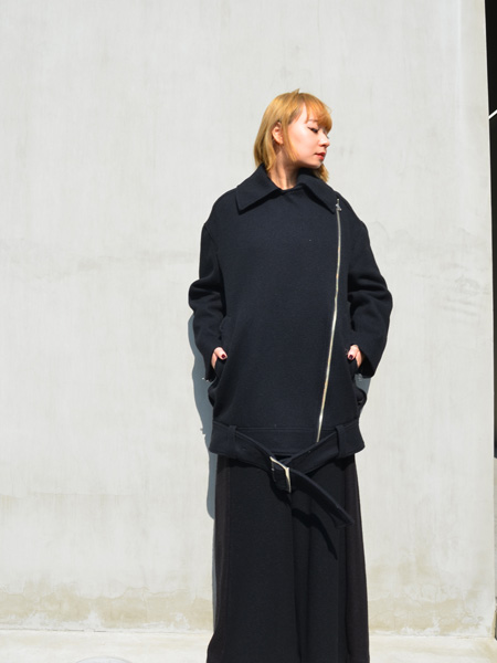 先日ご紹介したLOKITHOのアウターも、ライダースジャケットのような形のオーバーサイズコート。