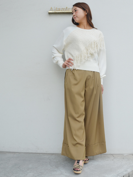 カジュアルですがmuller本来の上品さやモードもしっかりと感じることのできるニットは、muller of yoshiokuboの商品とだけではなく、Alitamiraブランド/fleurブランドのボトムとも相性が良いです。