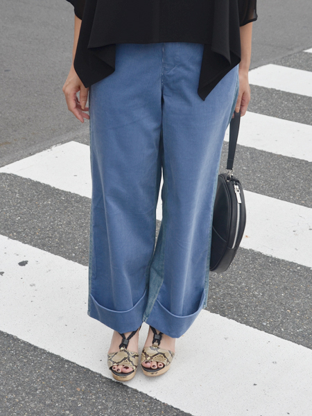 クロップド丈のおかげで、普段はぺったんこやスニーカーが多い方にもバランス良く着てもらえますよ。