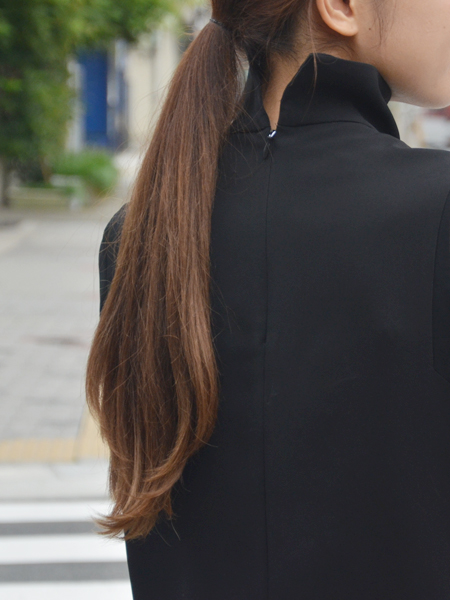 ウールパンツで合わせた時は、襟を折っていましたが、スタンドカラーが本来の形です。