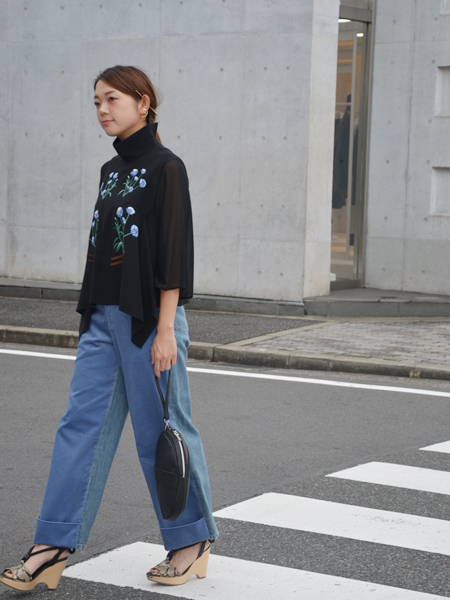 ブルーデニムだと刺繍のお花とリンクして全体に統一感が出ます。