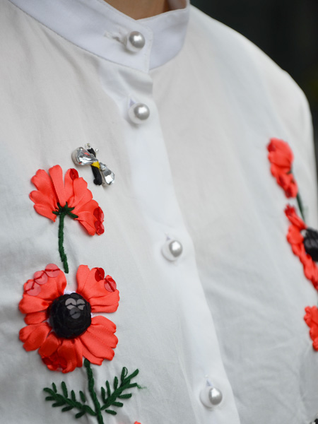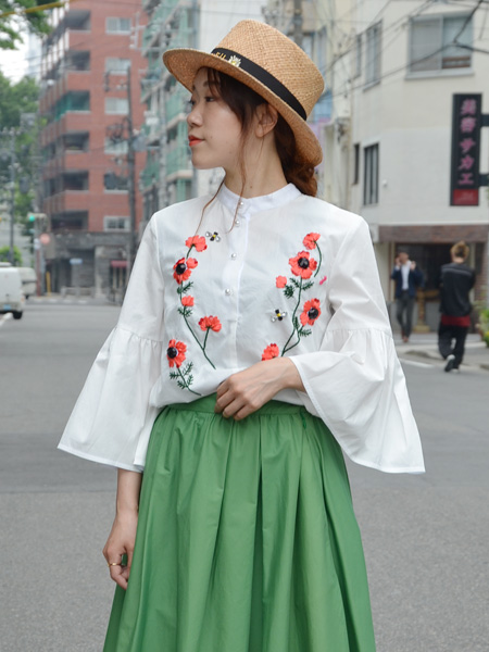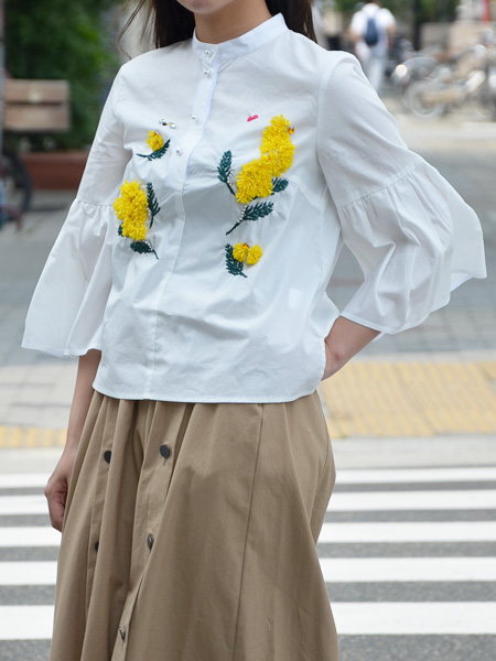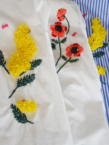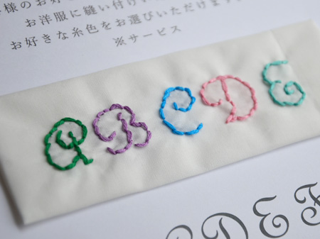 お好きな刺繍糸を選んで、ブラウスにアルファベット刺繍を入れてくれますよ♡