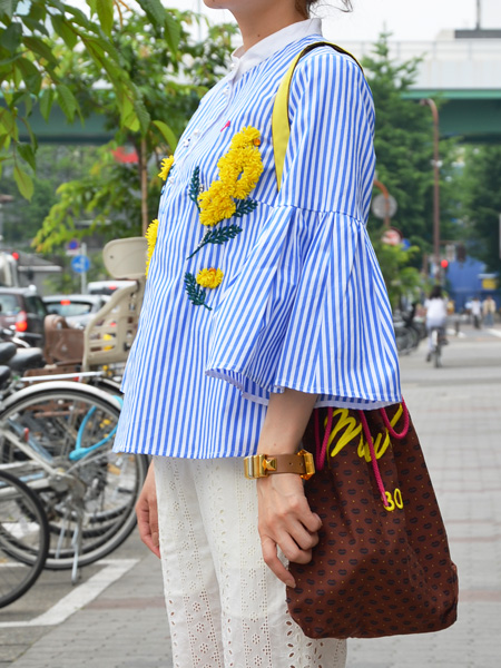 正直形がプレーンだったら選ばなかったかもしれません。が、このふわっとしたシルエットに、あえてシャープな印象のストライプ柄。このバランスが非常に可愛いな、と。