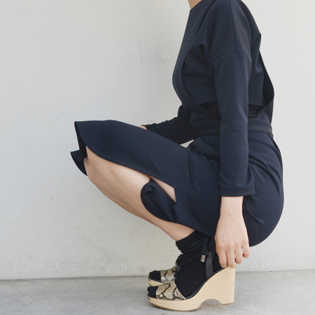 もちろん実際に肌見せして着用して頂けますし、意外とそんなに露出しているように見えないのでとても着やすいのですが、私はタイトなインナーを合わせてネイビーとブラックのバイカラーのように見せるのが好きなので、こういった着方もアリなんだなーーーと参考にして頂けると嬉しいです♡