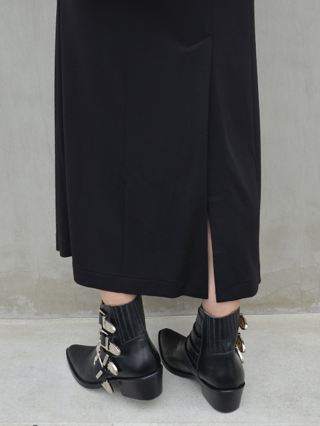 落ち感のあるジャージー素材を使用したレイヤード風ロングドレス。
