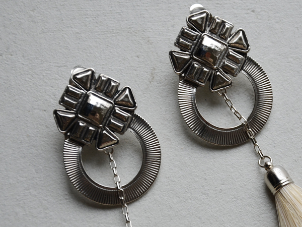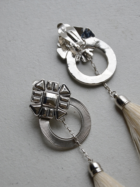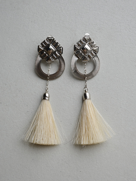 揺れるホーステールフリンジは、大ぶりのサイズ感で顔周りを華やかに演出してくれるアイテムです。