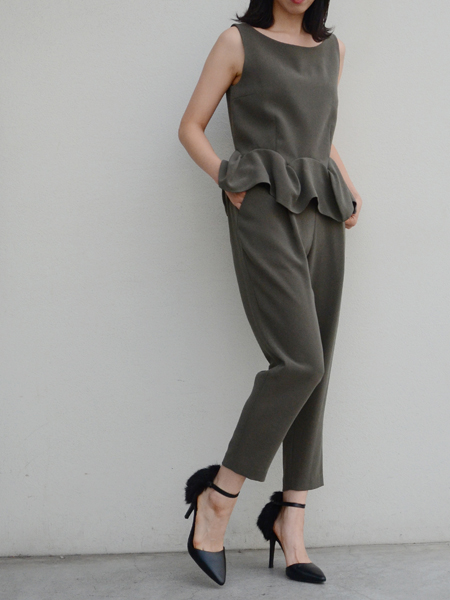 綺麗めなデザインなパンツですが、実はウエストはゴムで非常に履きやすい。