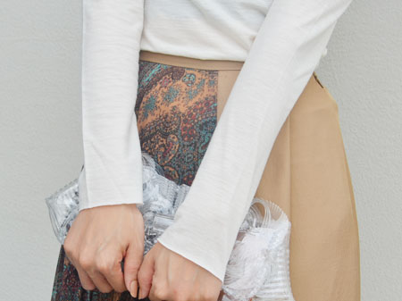 薄手の袖ならアウターにも響かず着てもらえますし、ノースリーブのトップスやワンピースのインナーとして、レイヤードしてもごわつかず着てもらえる特権もあります。