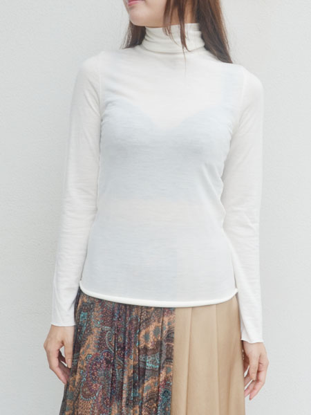 体のラインに自然に沿ってくれるので、自然とスタイルアップ効果が得られる優秀なハイネックトップスですね^^