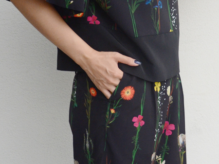 非常に美しいボタニカルプリントに私も完全に一目惚れしまして、今回パンツを購入させていただきました。