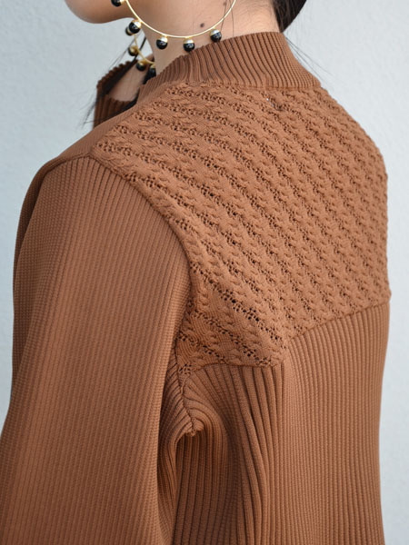 こちらのニットもそれに近いようなしっかりとしたハリ感があり、よくある温かい保温性の高いほっこりニットではないのです。