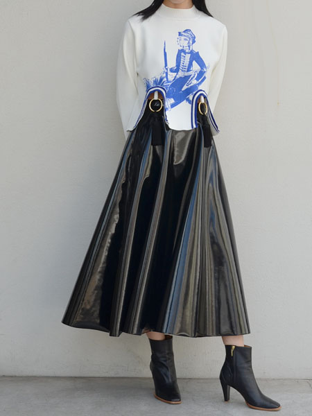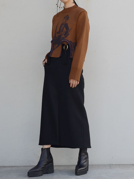 先ほどはAKIRANAKAのボリューム感のあるスカートで合わせていたので、今度はmameのタイトスカートで。