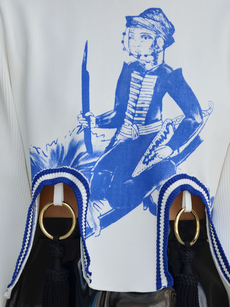 シーズンテーマである、無国籍さを象徴するような船に乗った僧侶が描かれたトップス。