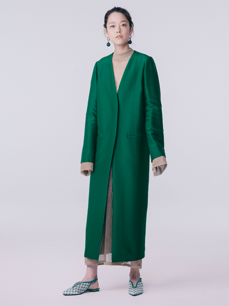 上品な程よい光沢感のあるウールシルクを使用したIラインのコート。
