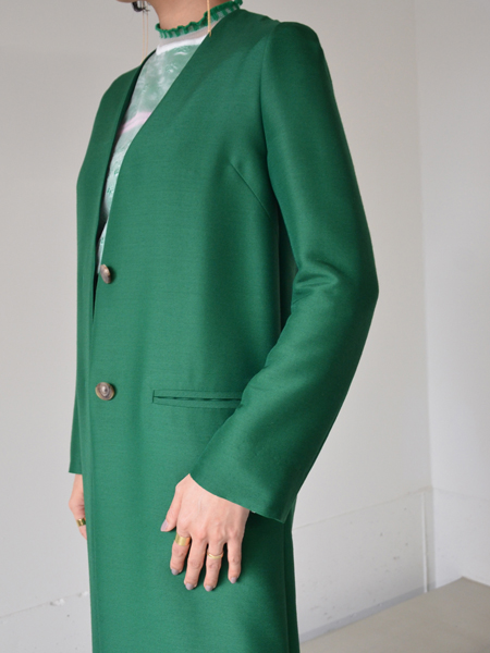 ノーカラーなので、デコルテのラインが綺麗に出ますね。