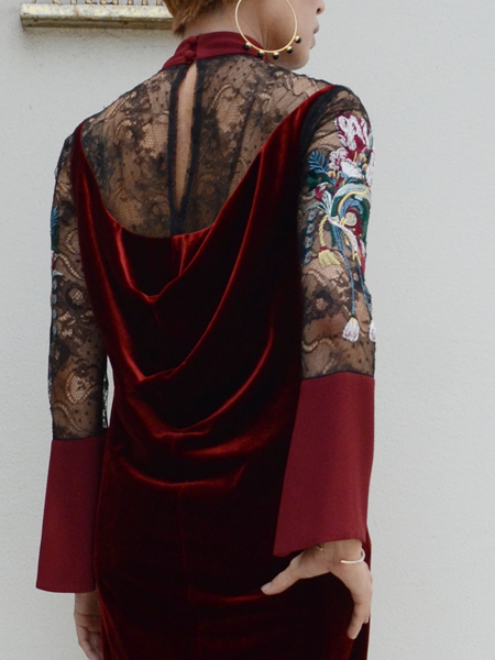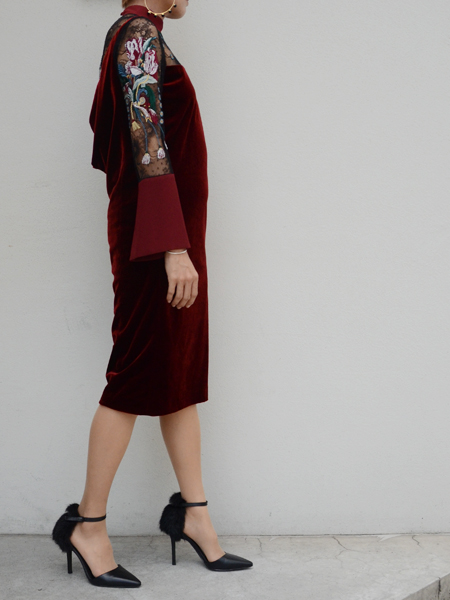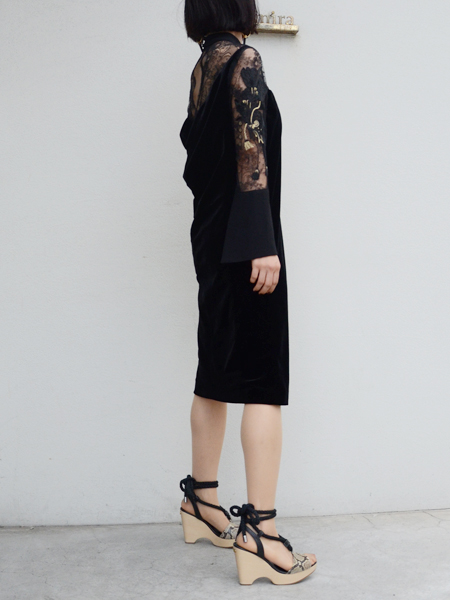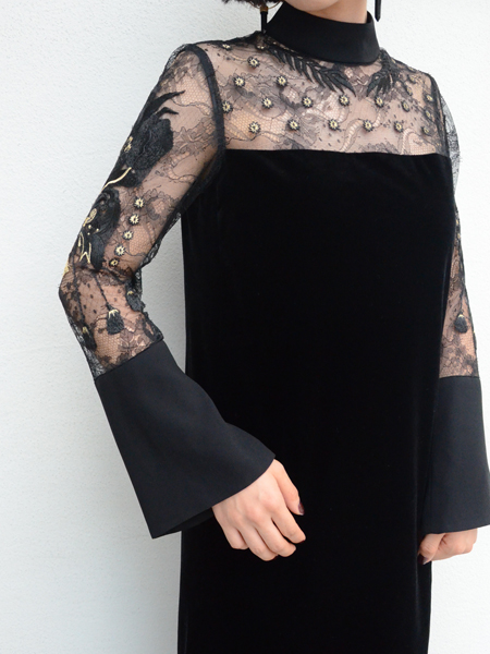 【mame】ベロアスタンドカラーデコルテレースドレス by kanda