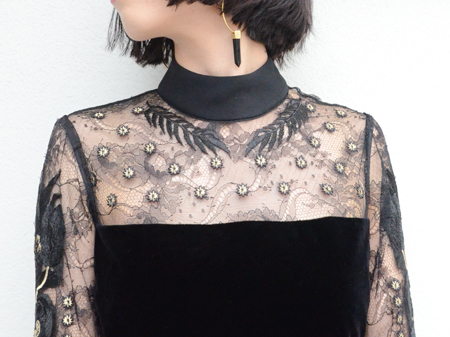 重みのある素材に繊細な刺繍レースの切り返しのバランス感は絶妙ですね。