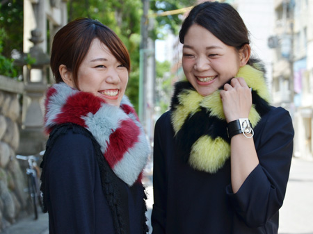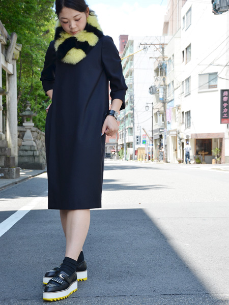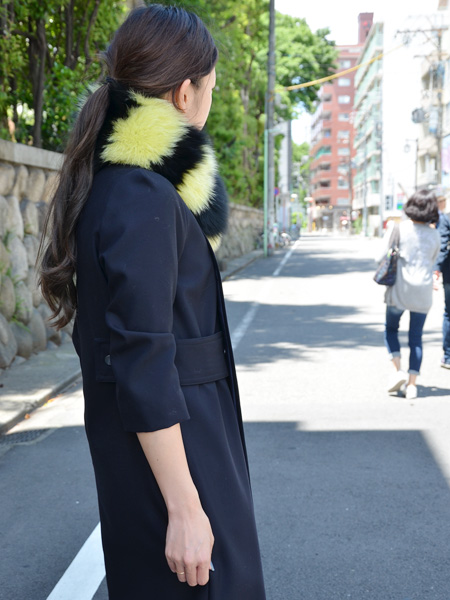 シンプルなのでTRESORのフォックスファーのティペットでアクセント付けを。