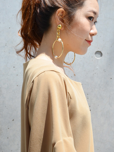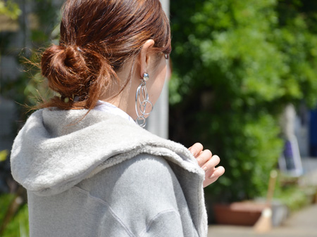 合わせたBijouのフープイヤリングもサイズ感とデザインが好みでした。