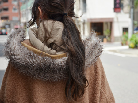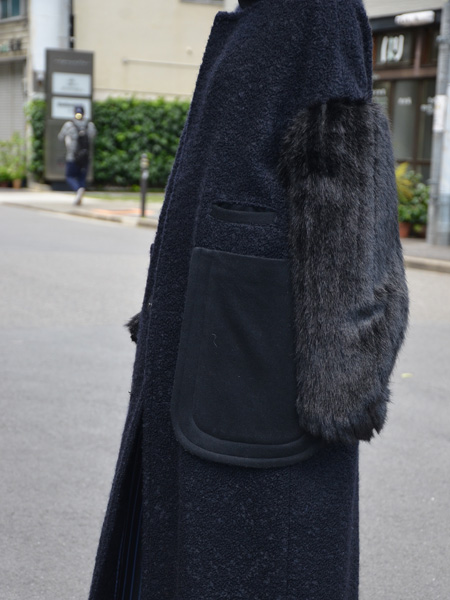左右に存在する大きめのポケット、動物のようなボリュームたっぷりのファーのお袖。