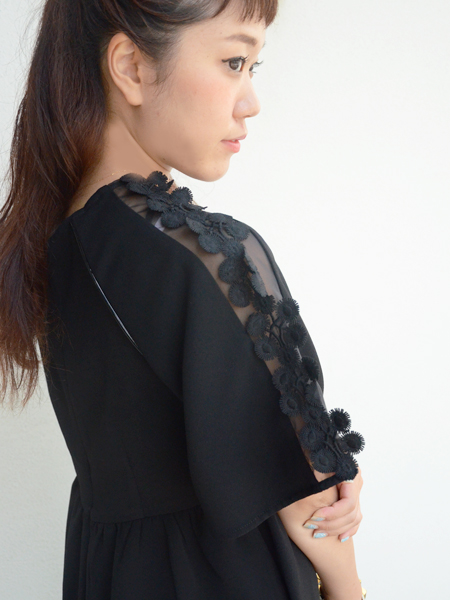 袖、裾にはオーガンジー×フラワーレースの切り替え♡♡