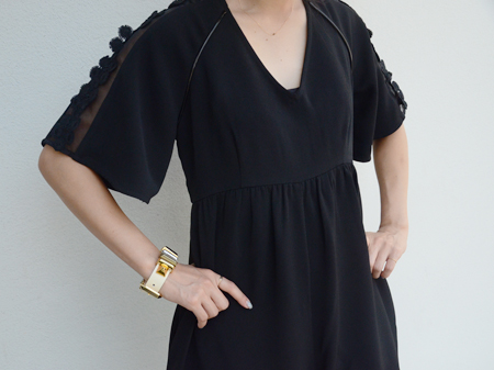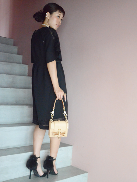 1枚で完成するジャンプスーツですが、半袖で着る時期にはこうして小物で遊びを加えてさらに華やかに着たいなと思っています。
