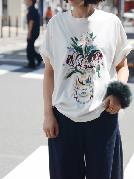 今の時期から秋を先取ってTシャツに合わせるのも可愛い♡