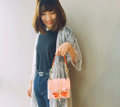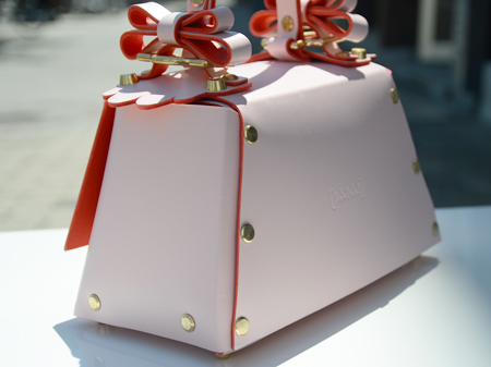 バッグ両サイドには羽(wing)とリボンという可愛らしいモチーフの掛け合わせ。