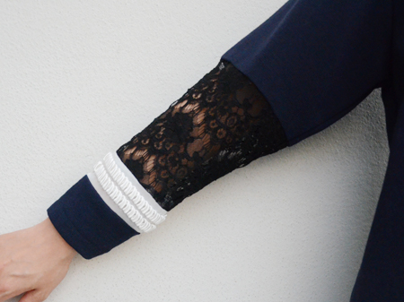 ネイビーのカラーはよりモード感が強まり、黒のレースのラグジュアリー感が増します。