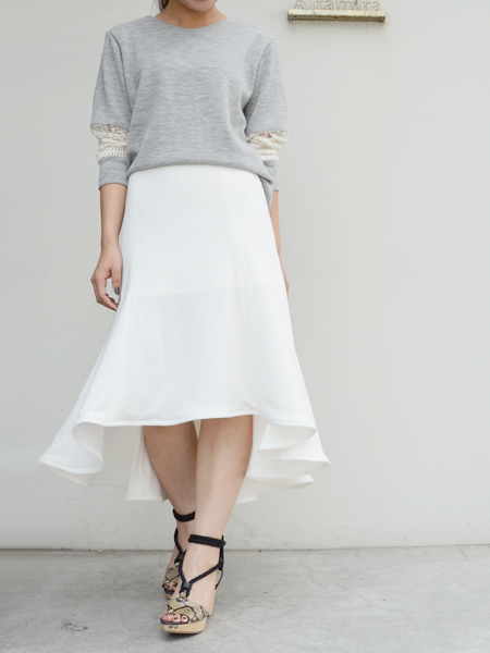 クロップド丈でミニ丈からフルレングスまでバランスよく着ていただけるのもポイントが高いです。