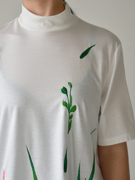MameKurogouchi Flower Embroidery Jersey T-shirt