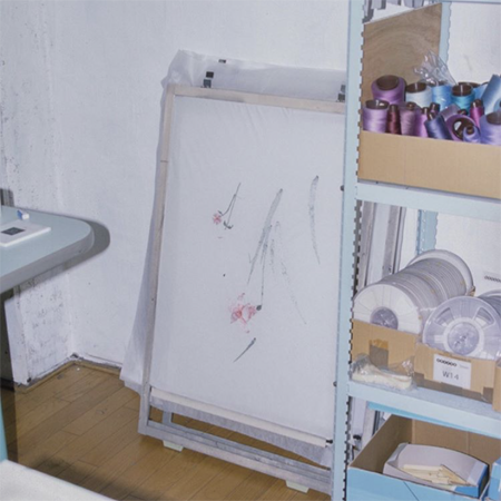 今回花瓶に活けたお花から着想を得て、デザイナー黒河内さん自身がデッサンした絵型をそのままお洋服に刺繍している様子が描かれています。