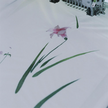 繊細なカラー配色で陰影のある刺繍は、ハッとするほどリアルで美しい。