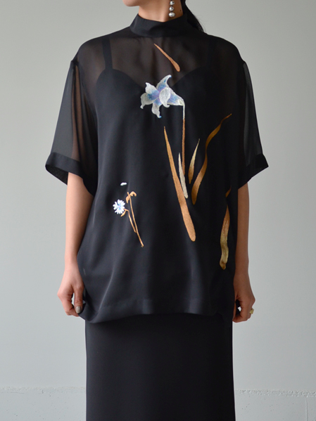 Mame Kurogouchi Flower Embroidery Chiffon Tops、T-shrts by kanda